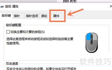 6、 打开鼠标属性窗口后,点击硬件选项卡进行切换。