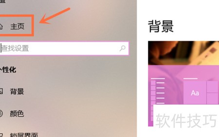 2、 进入设置页面后,点击左上角主页选项。