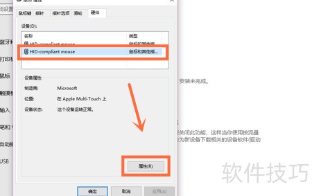 7、 在设备中找到需卸载的名称,选中后点击右下角属性按钮,操作所示。