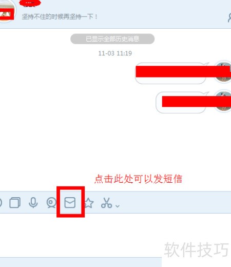 3、 打开软件后,选中联系人,点击信封图标即可发送短信。