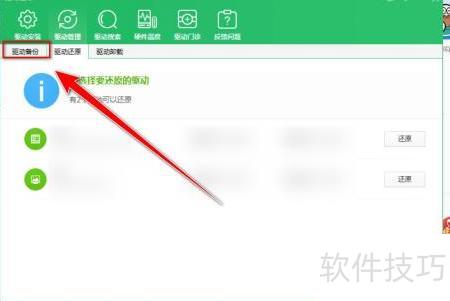 3、 在驱动检测界面,选择并点击驱动备份选项。