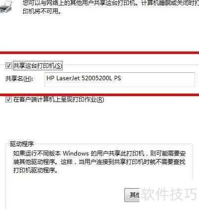 惠普5200共享打印,主机XP系统,Win7客户端使用自带驱动安装。