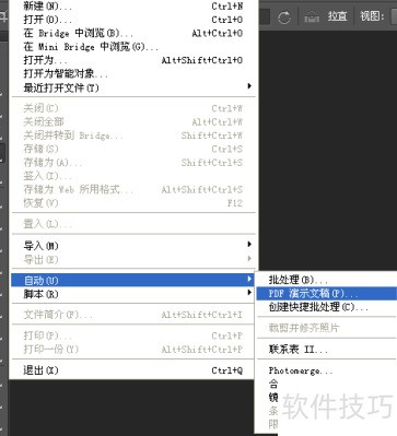 1、 在文件栏中选择自动下的PDF演示文稿,即点击左图蓝色区域即可。