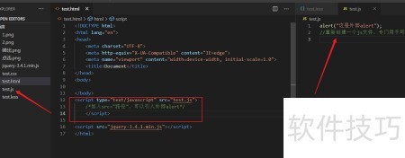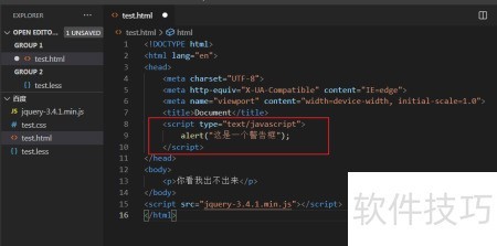 2、 将代码直接写在script标签内,示例如下: