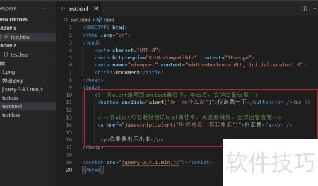 4、 第二种方法:将代码置于body标签内,示例如下: