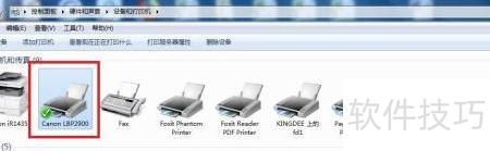 12、 此时,打印机和传真设置中,Canon LBP2900已显示绿色对勾,表示已选中。