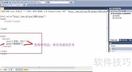 5、 开始编写代码,首句使用alert创建消息提示框。