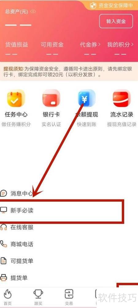 1、 打开起点订购App,进入我的页面,点击新手必读即可查看。