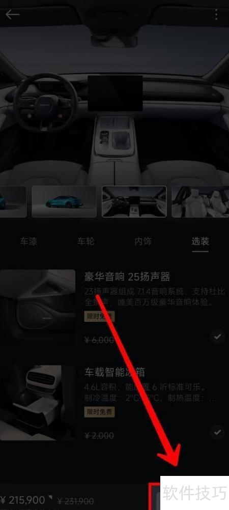 3、 依次选择车漆、轮毂、内饰及可选配置。