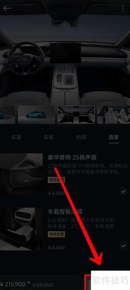 3、 依次选择车漆、轮毂、内饰及可选配置等内容。