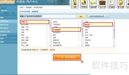 4、 挑选对应产品类别,点击进入详情填写步骤