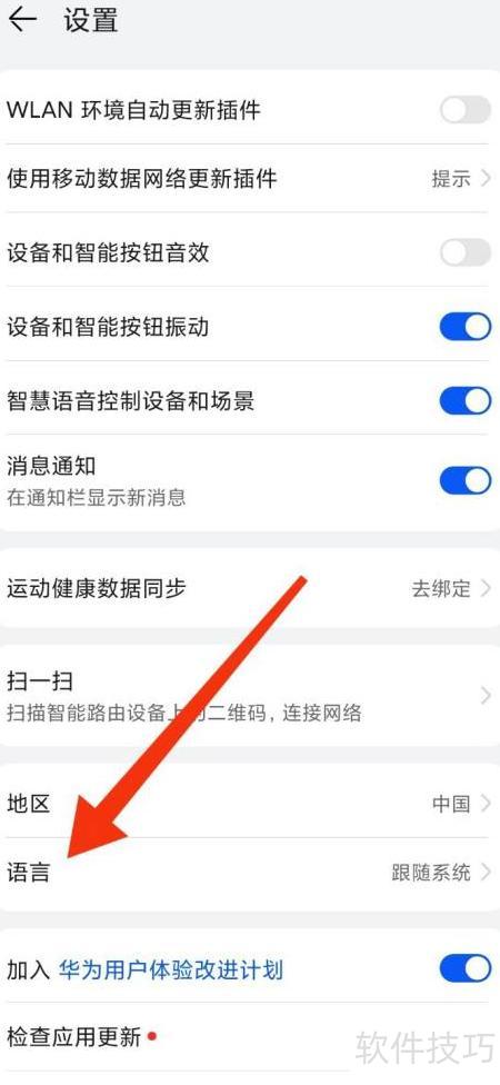 3、 在设置页中选择语言选项