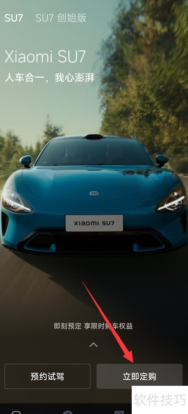 1、 打开小米汽车APP,首页点击立即订购即可。