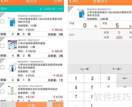 4、 选择货车中的商品,调整数量后保存并确认下单。