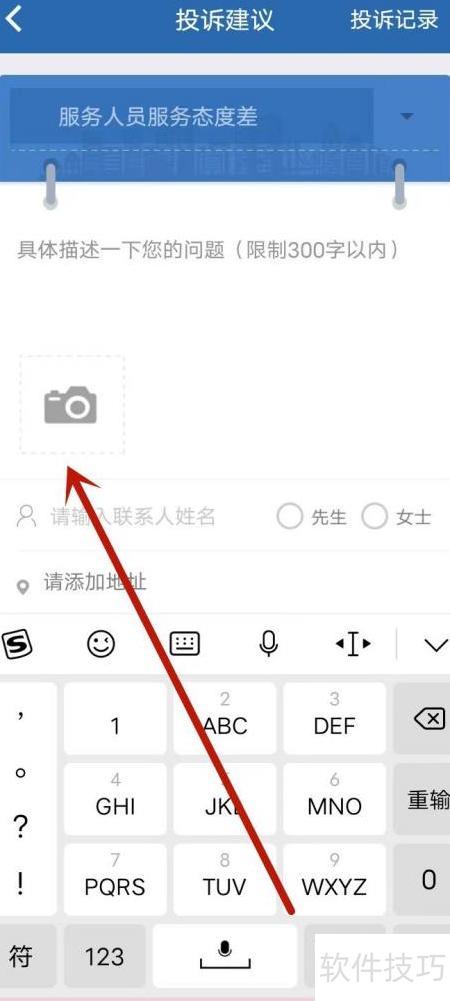 2、 在投诉建议页面填写问题详情并上传相关照片资料。