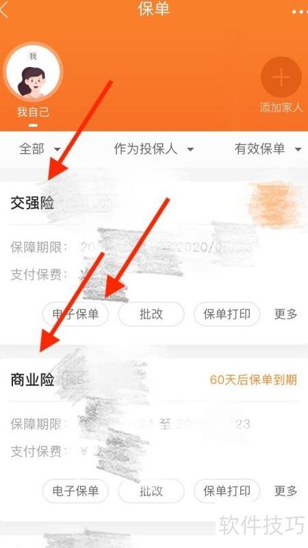5、 点击交强险和商业险中的电子保单,操作所示。