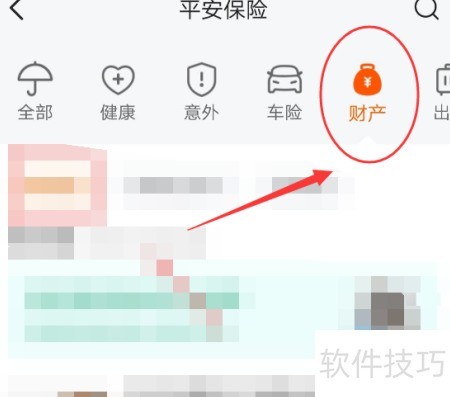 3、 在平安保险页面下方点击财产即可查看详情。
