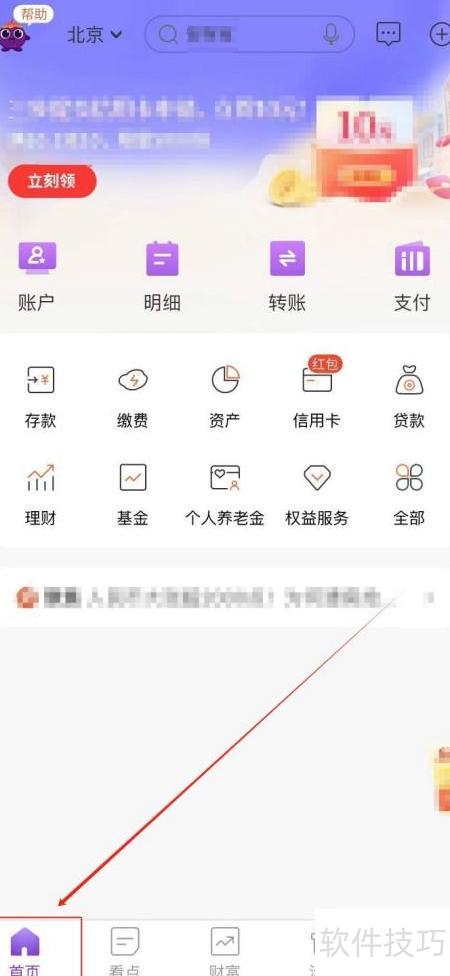 1、 打开光大银行,点击左下角首页图标即可进入。