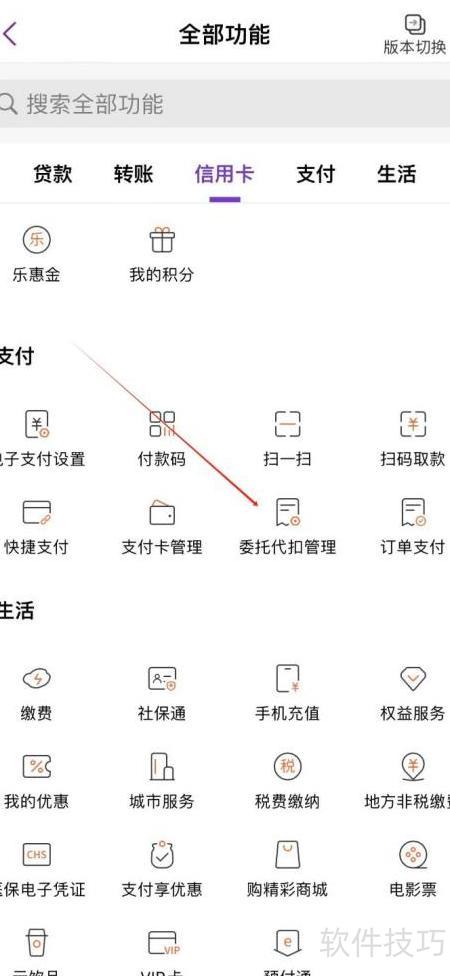 2、 进入全部功能页面,选择委托代扣管理即可进行操作。