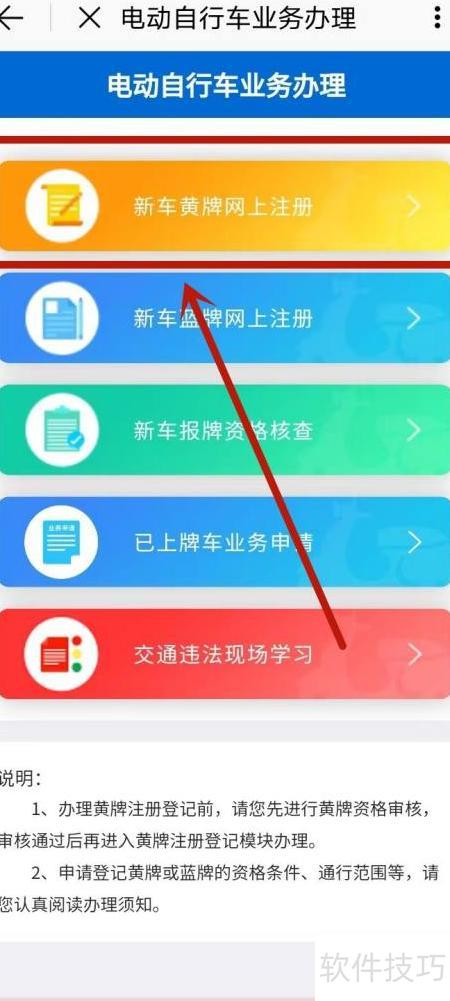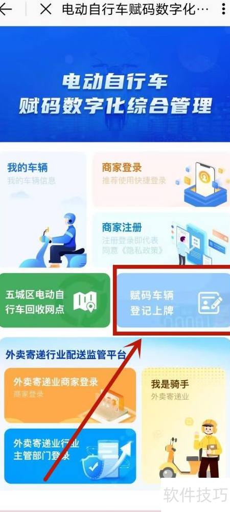 2、 进入电动车服务页面,选择扫码登记上牌。