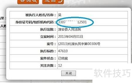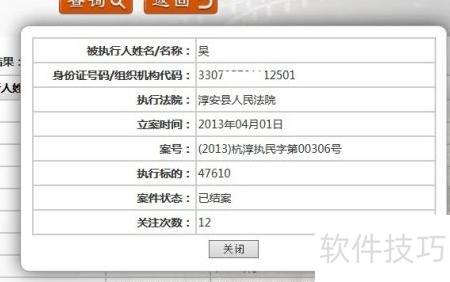 2、 若需查询杭州某企业法人吴某的相关信息,进行搜索后将显示其名下所有被执行记录。例如,其中一条编号为(2013)杭淳执民字第0036号的记录,点击进入后即可查看该案件的详细执行情况。