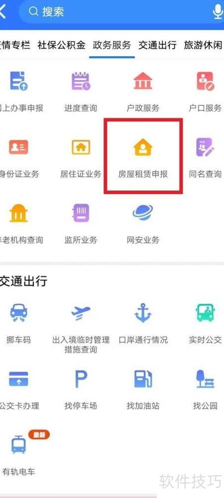 2、 点击政务服务,选择房屋租赁申报查看更多项目。