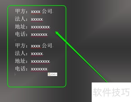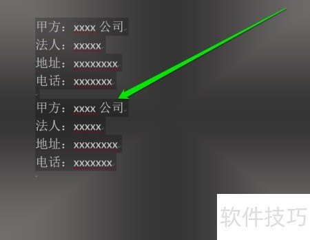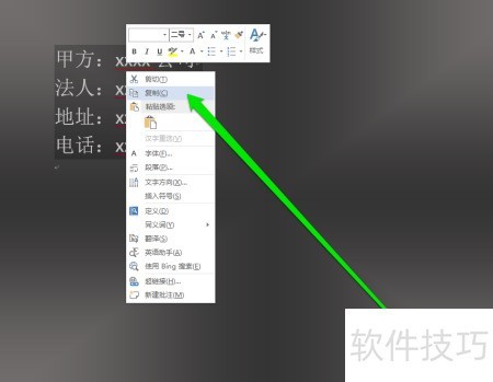 2、 复制合同签章格式,使用复制命令完成操作。