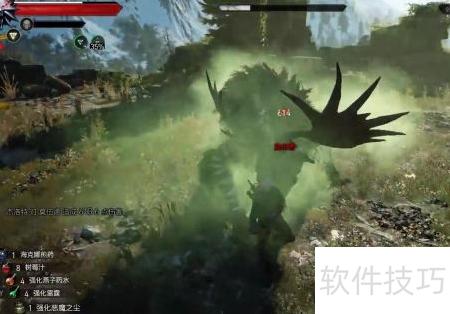 4、 深入前行将触发战斗,怪物残血时释放毒烟并逃逸。