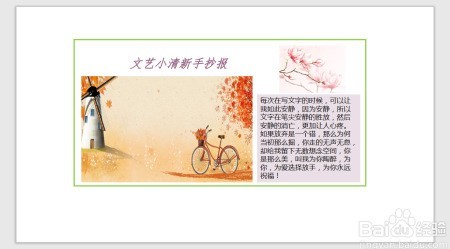 5、 在图框右下角添加文字,详细说明文艺小清新手抄报的主题内容与设计特色。