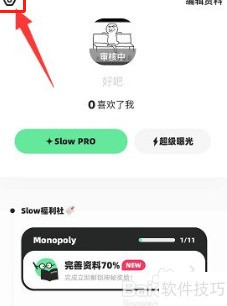 1、 先开启slow应用,进入个人主页后点左上角设置图标。