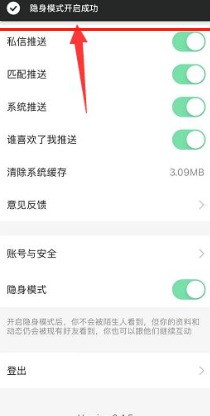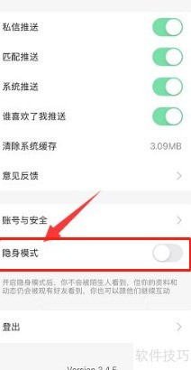 2、 在设置底部开启隐身模式