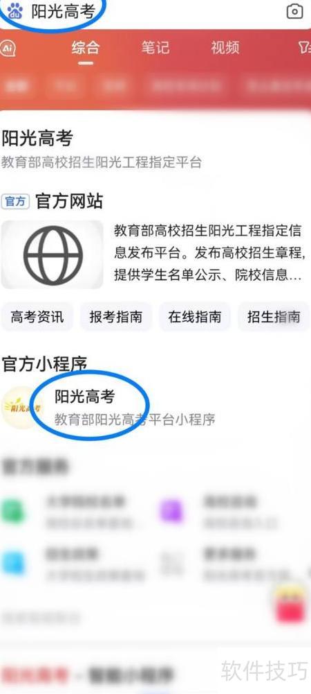 1、 在百度APP搜索阳光高考并进入其官方小程序。