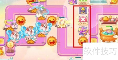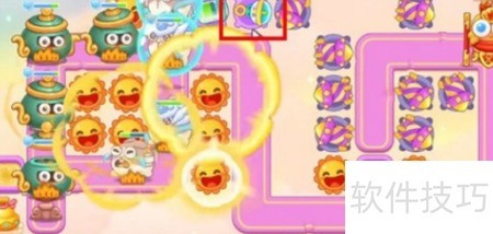 8、 在第六波高处建满级泡泡塔,后期补导弹塔,注意躲避飞行兔。