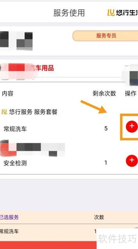 3、 扫码后进入页面,找到常规洗车项目,点击其后的号,即可扣除一次洗车服务次数。