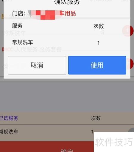 4、 弹出服务确认框后点击使用,成功提示出现再点确认即可完成操作。