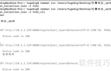 11、 执行 Newman 命令运行位于桌面的引擎对比_opt0.postman_collection.json文件,同时生成 HTML 报告并输出命令行结果。
