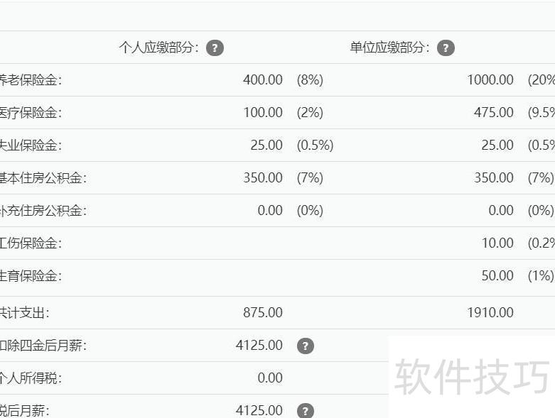 2、 月薪5000元,缴完五险一金后实得约4100元。