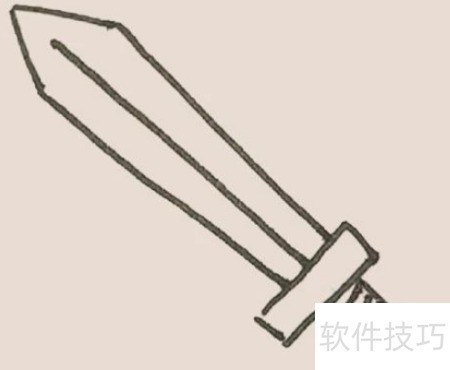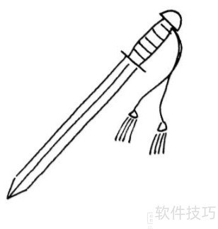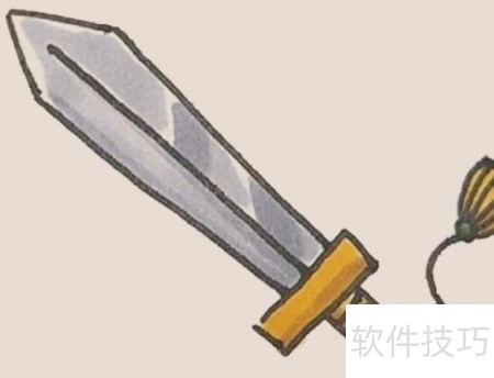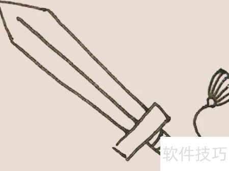 4、 在剑柄处添加纹理,并于末端绘上圆形装饰。