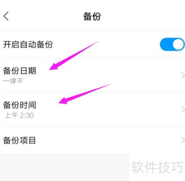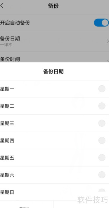 6、 开启自动备份功能后,可按需设定备份日期与时间,具体操作所示。