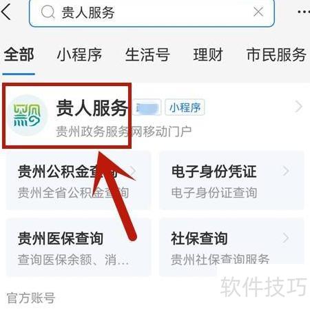 2、 进入支付宝,搜索并打开贵人服务小程序。