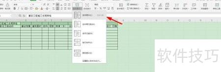 6、 选中第一列所有单元格,执行合并并居中操作。
