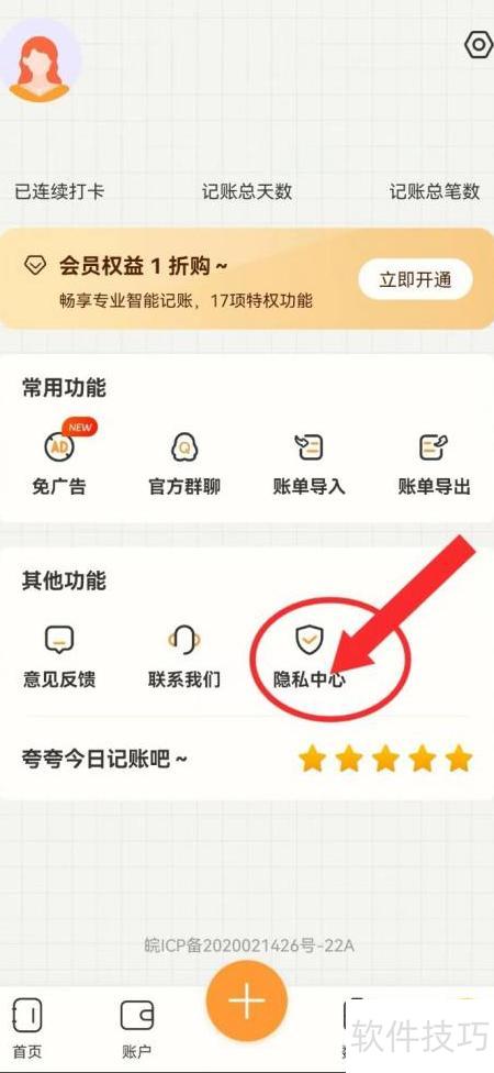1、 进入个人页面,选择隐私中心进行设置。