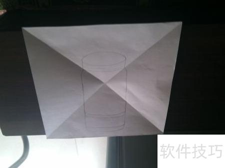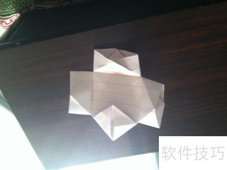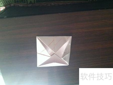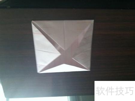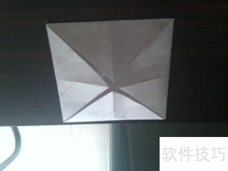 2、 将纸片对角对折形成十字交叉,四角向中心折叠,翻面后重复相同步骤,如此正反交替,连续进行三次对折即可。