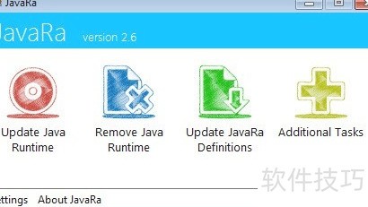 11、 下载JavaRa后直接运行程序,界面会显示多个图标,我们需选择其中一项来移除Java运行环境。