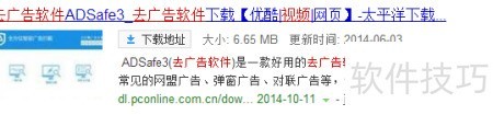 1、 在百度搜索视频去广告软件,定位名为ADsafe3去广告软件的资源,具体所示。
