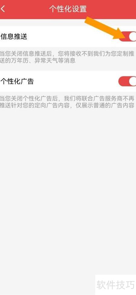 3、 进入个性化设置界面,找到信息推送选项,点击对应的小开关即可开启。