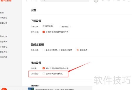 5、 开启切换歌曲时显示系统播放通知功能,只需勾选启用系统播放通知栏选项即可。