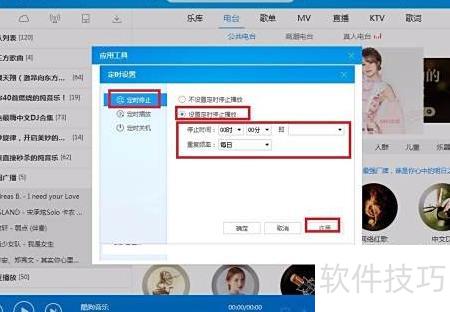 6、 播放结束后无需关机,只需点击定时停止,选择设置定时停止播放,设定好停止时间与重复频率,确认应用即可实现定时停播功能。