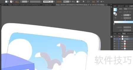 2、 将天空部分用瓦蓝色渐变填充,云朵涂成白色,鸟的身体以浅蓝灰色为主,翅膀末端点缀白色。