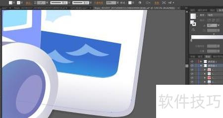 7、 相机左侧飘带以蓝灰渐变与白色组合填充,右侧高光部分采用浅蓝灰色点缀,整体设计协调,最终完成相机图像绘制。